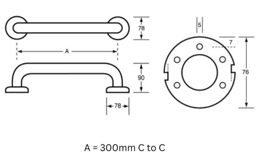 *The materials and construction of this grab rail meet AS1428.1 force requirements to be able to withstand a force of 1100Nm applied at any position and in any direction without deformation.