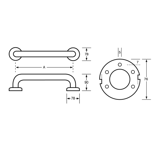 750mm Straight Grab Rail in Antimicrobial