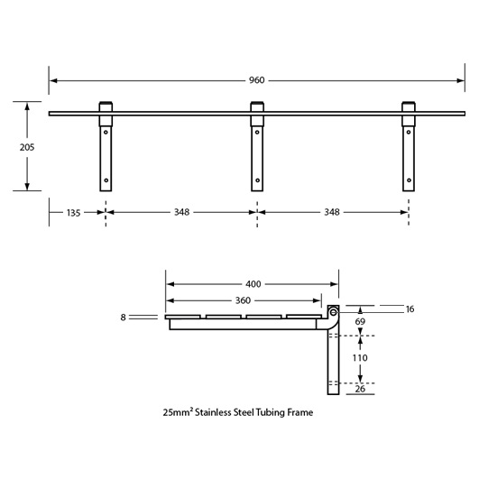 | Material | #304 Satin Stainless Steel Frame 25mm² Tube |