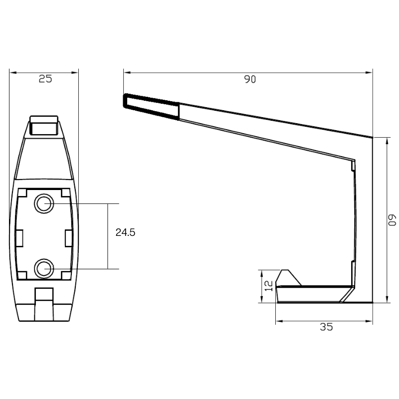 Height: 60mm x Width: 25mm x Projection: 90mm