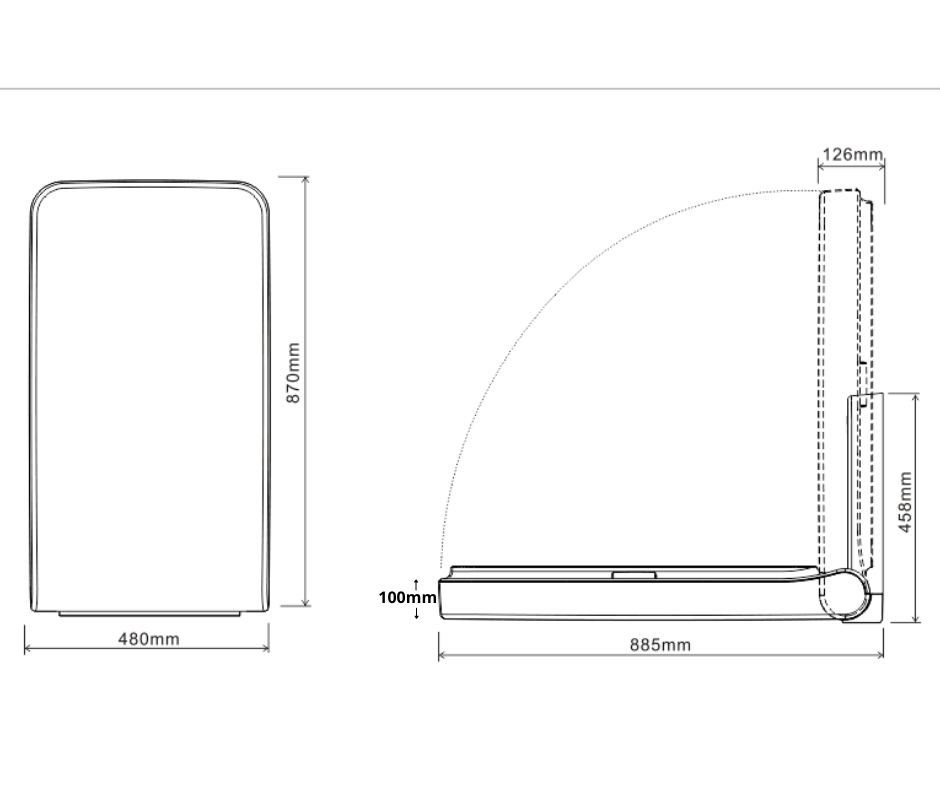 | Dimensions | Open: 885mmH x 480mmW x 885mmD Closed: 870mmH x 480mmW x 126mmD |